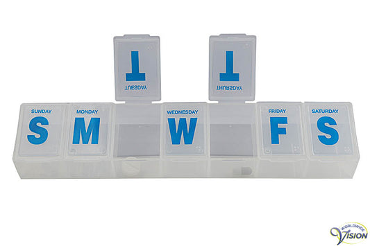 Wanneer u blind of slechtziend bent kan het gebruik van een reguliere pillendoos lastig zijn. Ons assortiment pillendozen voor senioren, slechtzienden en blinden bestaat uit verschillende modellen die het gebruik voor u makkelijker maken.