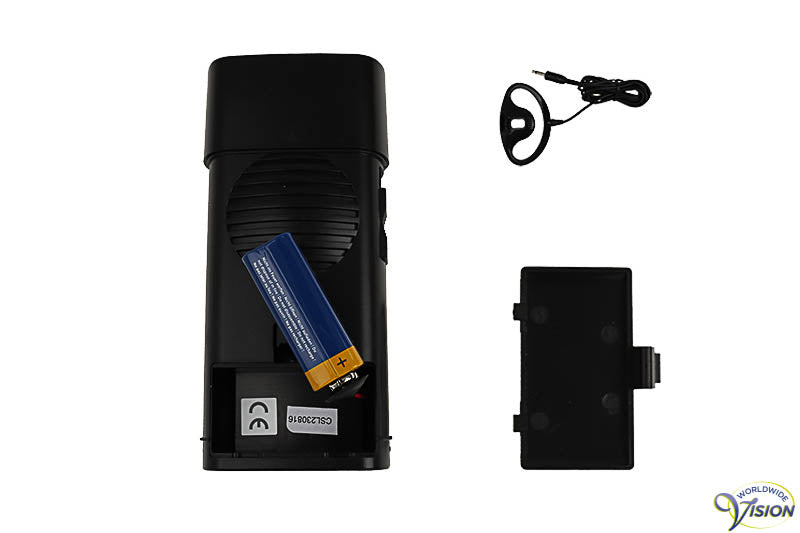 Colour detector Cobolt Speechmaster, Dutch talking (English or German) on request), distinguishes colour nuances in light, dark, very light and very dark, volume switch, weight approx. 170 grams, dimensions 140 x 65 x 35 mm, colour black, including earphones and 9 Volt block battery.