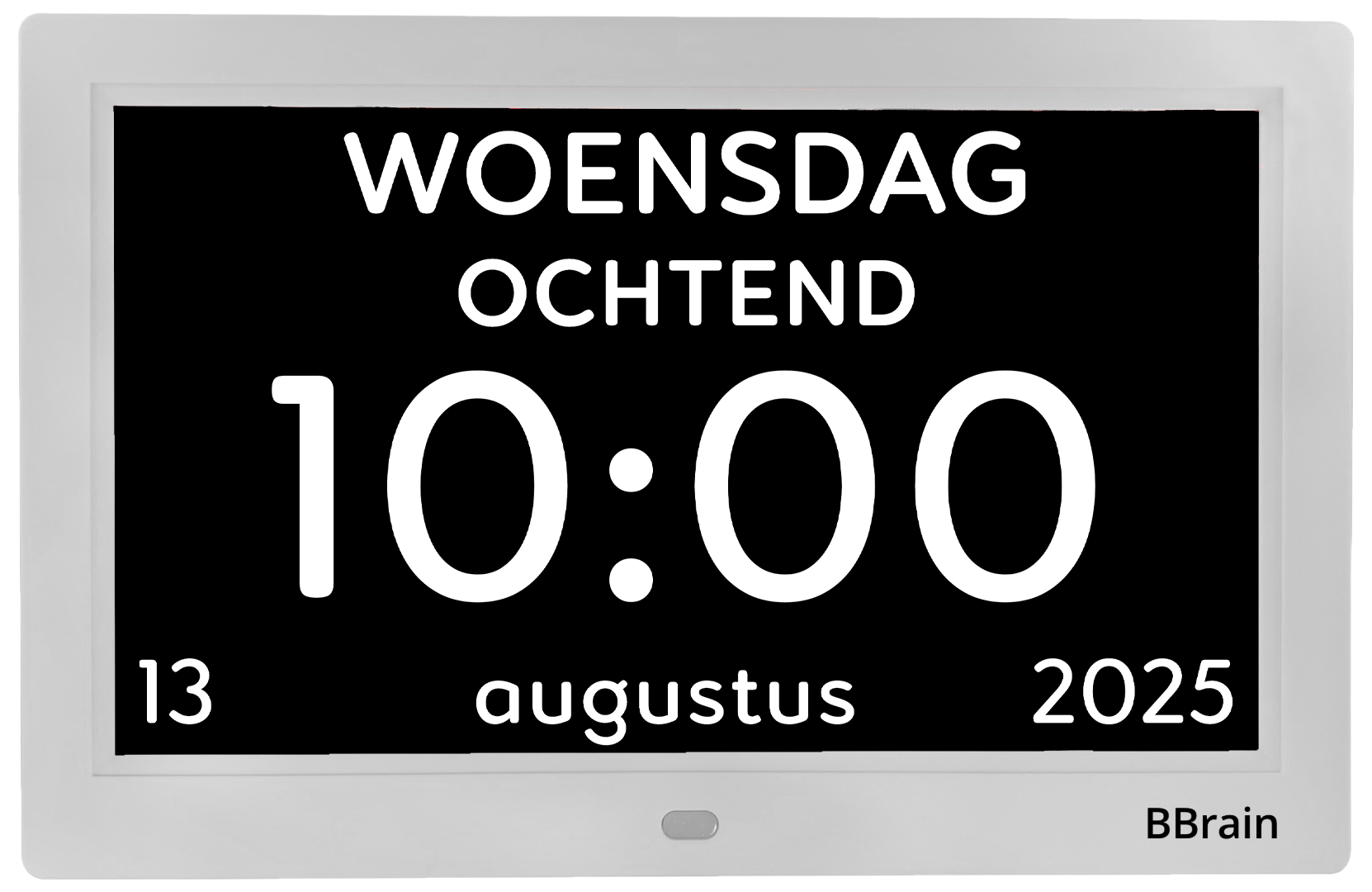 De BBrain Basic Analoog is een slimme en gebruiksvriendelijke klok die speciaal is ontworpen om structuur, overzicht en rust te bieden in het dagelijks leven. Deze klok biedt een uitgebreide tijdweergave met datum, tijd, dag en dagdeel, en laat je zelf kiezen tussen een analoge of digitale weergave. Je bepaalt bovendien zelf hoe gedetailleerd de tijd wordt weergegeven. Dankzij de automatische omschakeling tussen zomer- en wintertijd blijft de klok altijd up-to-date.