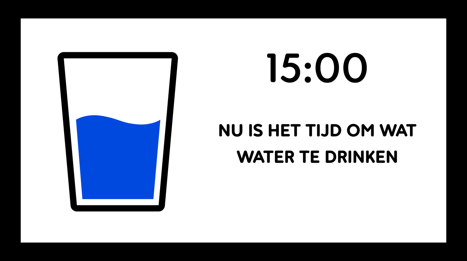 - Eet- en drinkmomenten (ontbijt, lunch, diner, water drinken, fruit eten)
