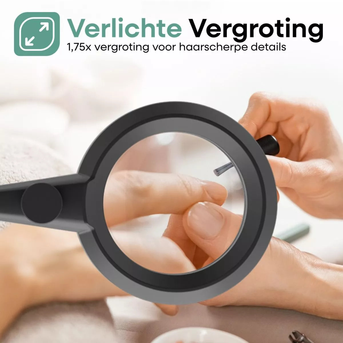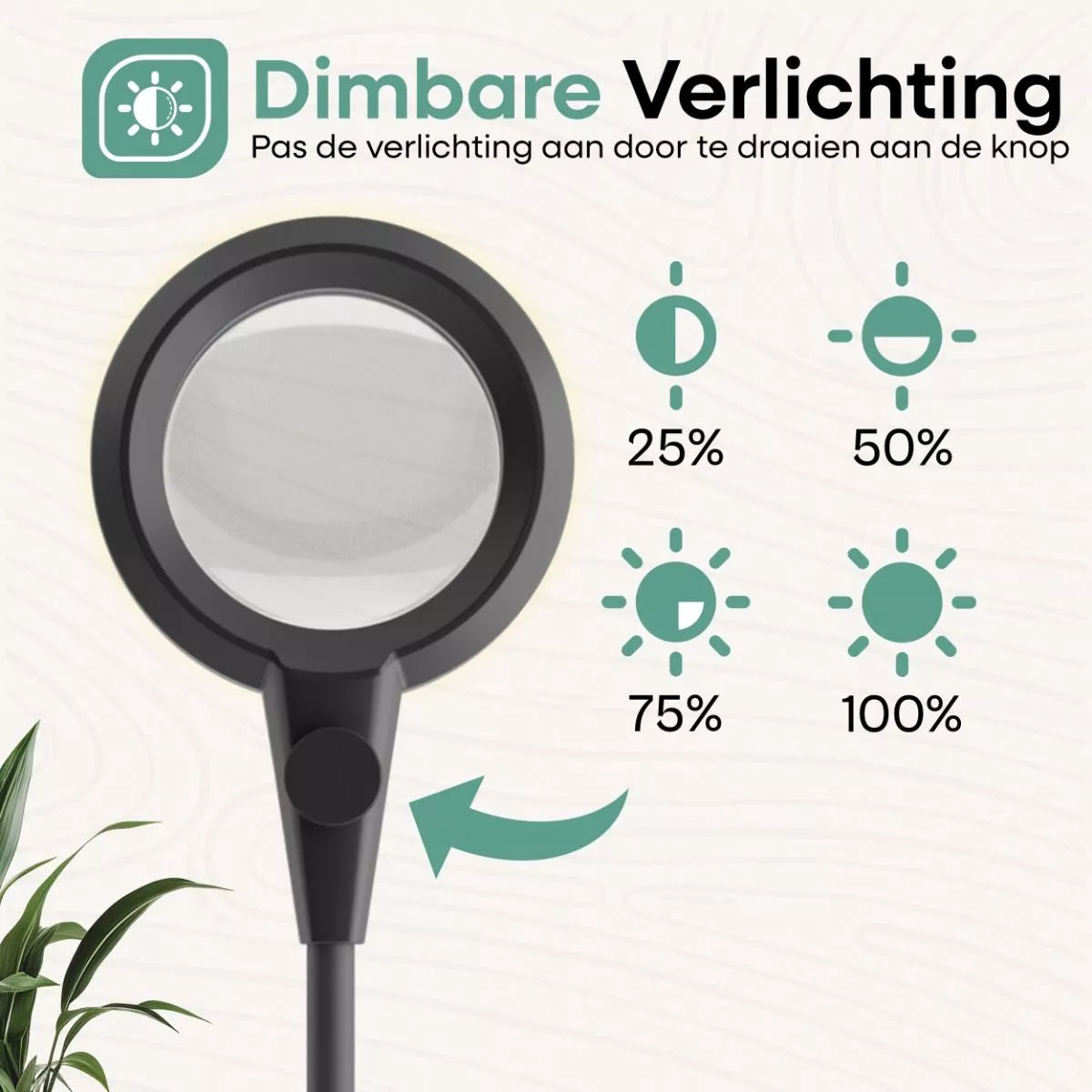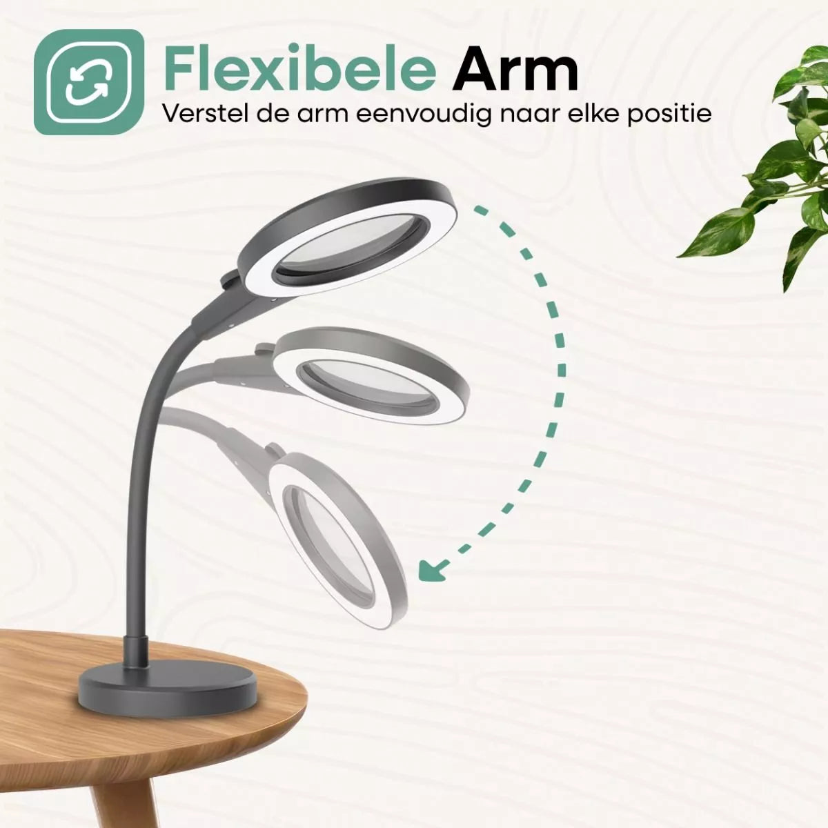De loeplamp beschikt over een ruime lens van 9 cm met een vergroting van 2,25x (5 dioptrie), waardoor zelfs de kleinste details haarscherp zichtbaar zijn. De LED-verlichting is traploos dimbaar en biedt drie kleurtemperaturen (3000K, 4500K en 6000K), zodat je het licht eenvoudig aanpast aan je werk en omgeving.