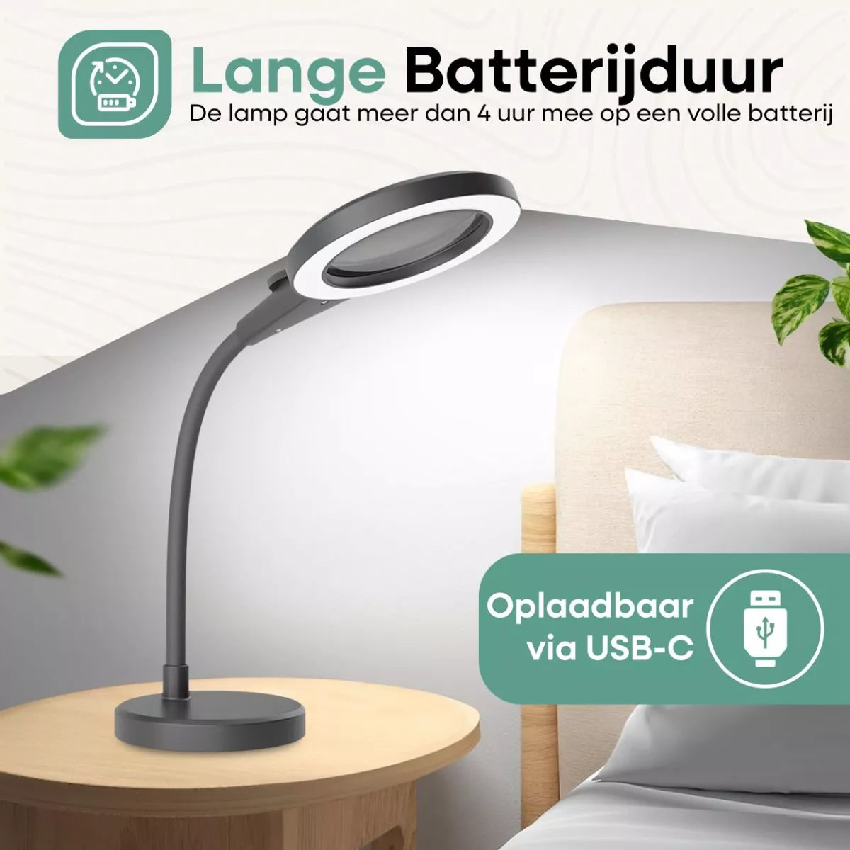 Dankzij de krachtige accu kun je de SBR Zoom+ tot 4 uur draadloos gebruiken. De flexibele 360° zwanenhals zorgt ervoor dat je altijd de ideale werkhoek hebt, of je nu leest, knutselt of fijn werk uitvoert.