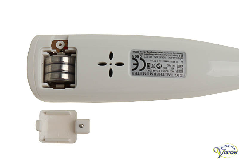 Digitale koortsthermometer MedTalk met een meetbereik van 32 tot 42,9°C. en een nauwkeurigheid van 0,1°C. Meertalig sprekend waaronder Duits, Engels, Spaans, Frans, Russisch en Italiaans. Herhaalfunctie en automatische uitschakeling na 1 minuut, digitaal LCD display. Inclusief kunststof opbergdoosje en 3 LR-1130 (LR-54) knoopcellen.