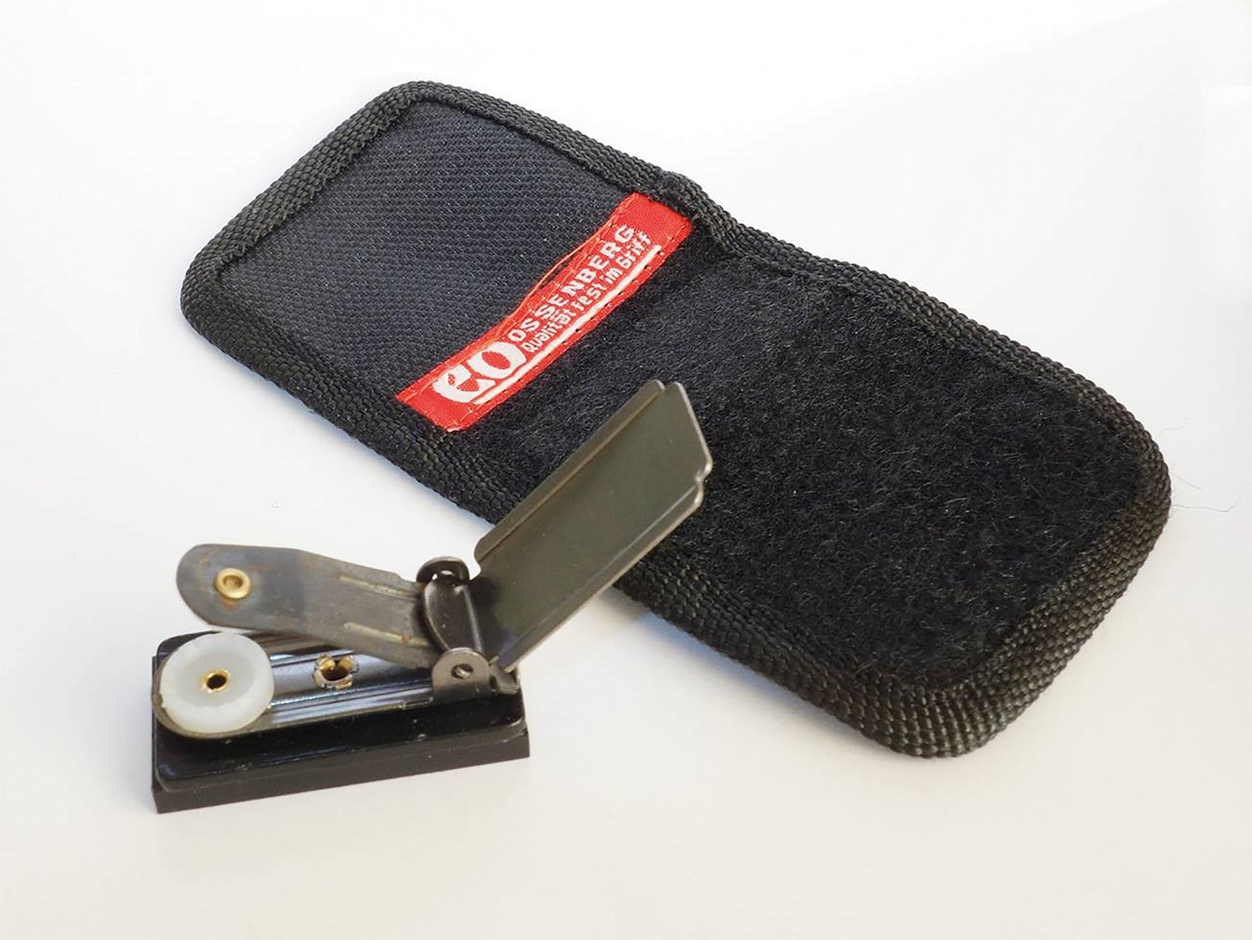 De Easy Click houder bestaat uit een manchet met klittenbandsluiting, geïntegreerde magneten en een losse magneetclip. Dankzij het 2-magneetsysteem kan de houder worden gebruikt om de wandelstok aan uw tas, kleding of aan een magnetisch oppervlak te bevestigen.